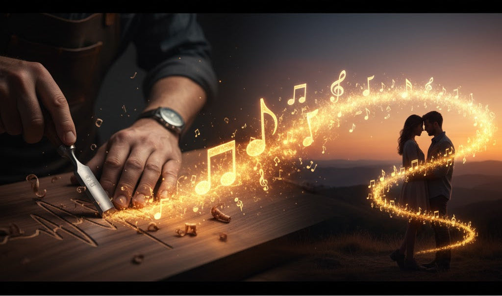 I write every lyric and melody personally. A machine cannot understand your partner's inside jokes, the specific ache of a memory, or the story of how you met. That part remains 100% human.